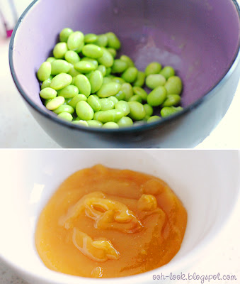The edamame are boiled from frozen; the miso sauce is a rich,